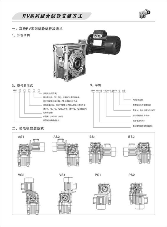 rv系列兩級減速機雙機減速機)支持大速比,大扭矩。速比從1:100-1:5000之間,扭矩從70牛米-1800牛米,安裝方式靈活多變。本網頁介紹rv雙機減速機的具體參數
