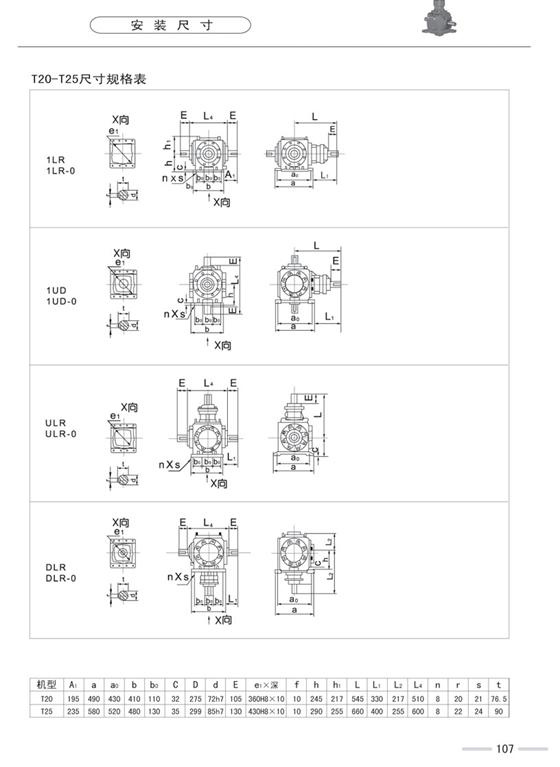 T系列一級轉向箱,標準化,多品種,速比1∶1、1.5∶1、2.5∶1、3∶1、4∶1、5∶1全部為實際傳動比。平均效率98%。