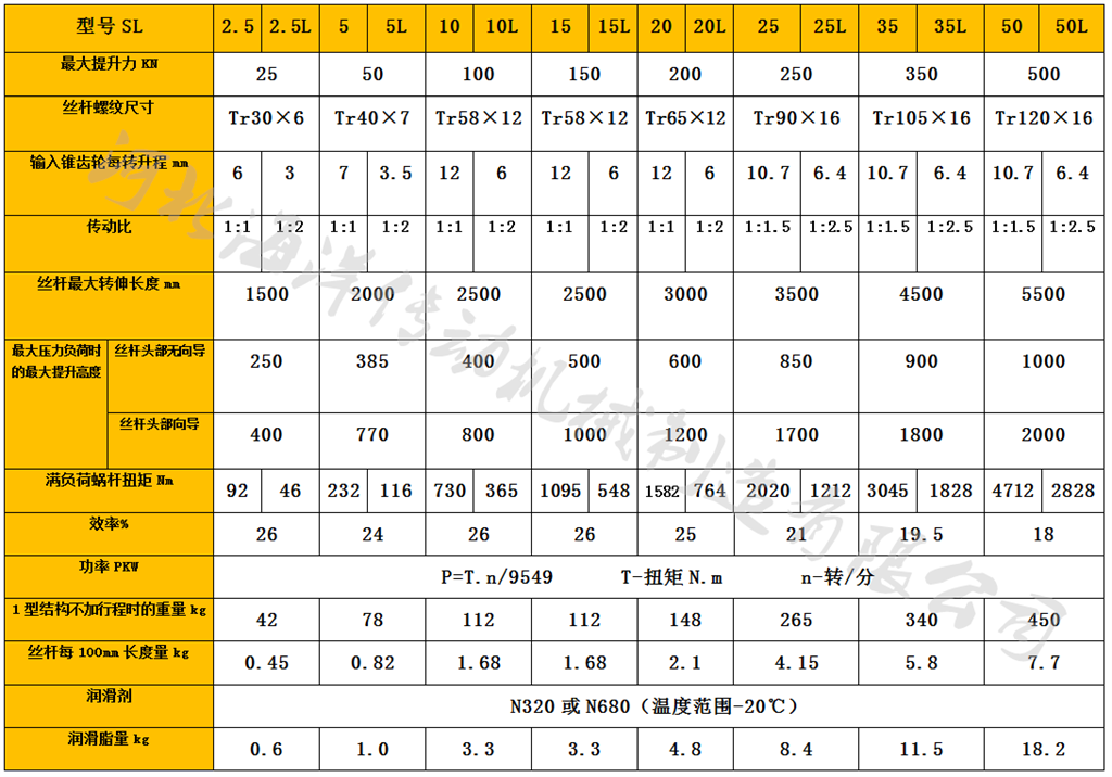(SL)錐齒輪螺旋升降機的承載能力及選型參數,注意事項