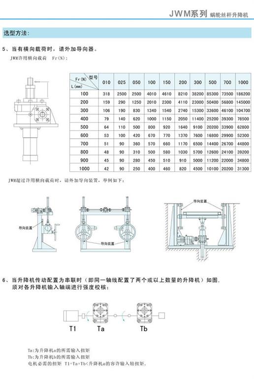 減速機|蝸輪絲桿升降機-JWM絲桿升降機當有橫向載荷時及配置為串聯時注意事項-海洋傳動