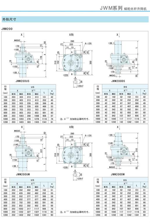 減速機(jī)|蝸輪絲桿升降機(jī)-JWM升降機(jī)200外形尺寸圖-海洋傳動(dòng)